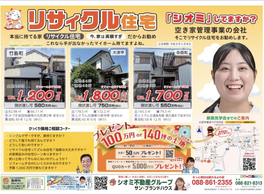 今、リサイクル住宅に購入する方の割合は日本で高知が1番多いのです。