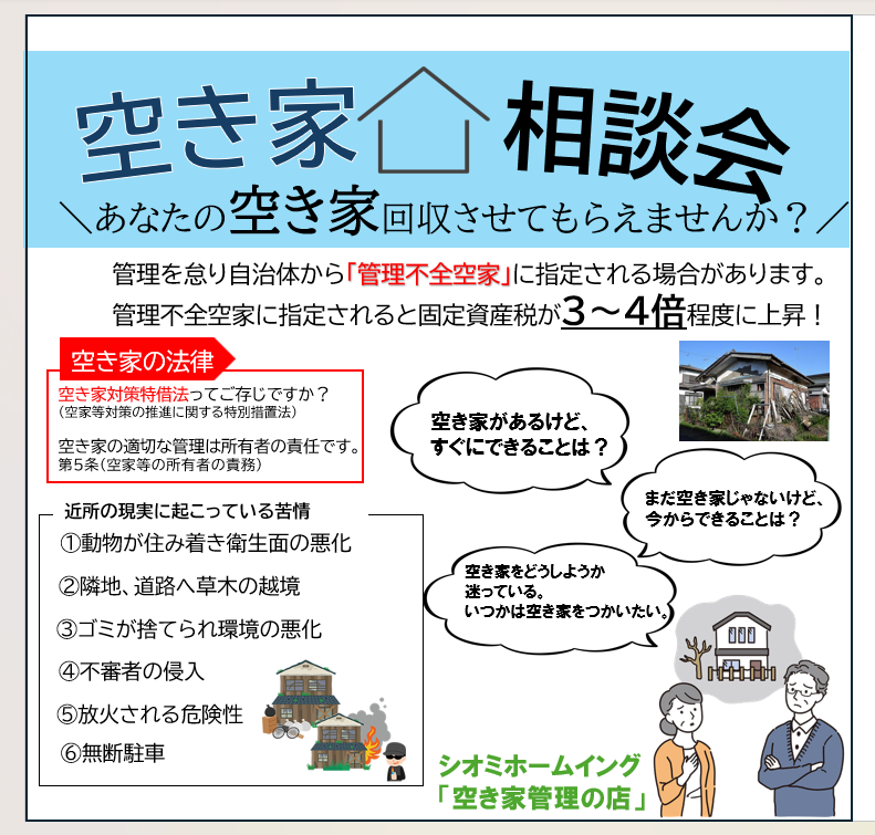 私達は空き家管理サービス及び、その活用方法等、家主様から依頼を受けて、