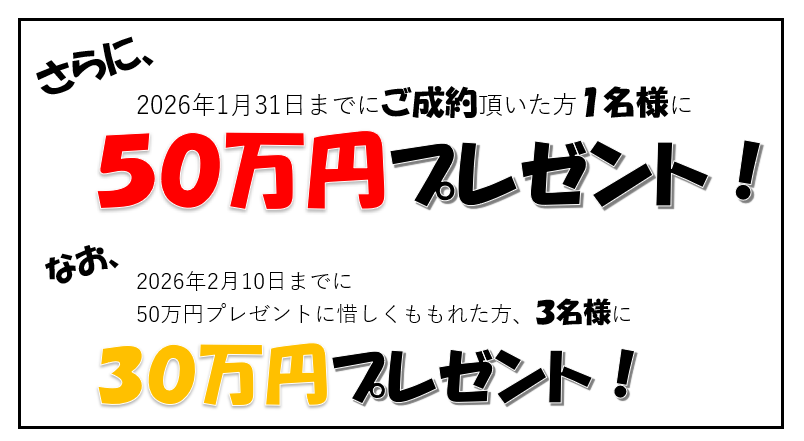 ※50万円・30万円プレゼントについては、ご契約時に担当より、ご説明いたします。